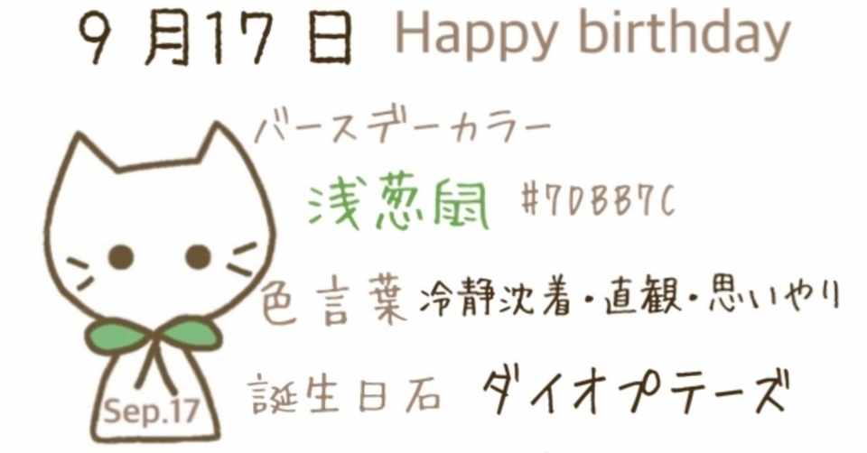 9 17 誕生 日. 9月17日がイラスト付きでわかる! 9月の17日目。年始から260日目(閏年では261日目)にあたり、年末まであと105日ある。 今日は何の日 モノレール開業記念日 憲法記念日(アメリカ合衆国) 歴史 1964年 東京モノレールが開業。 19年 ソウルオリンピック開幕 13年 台風天兔発生 誕生日 実在の. 10月9日生まれの誕生花と花言葉花の種類オンシジューム「誕生花」・オンシジューム <オンシジウム> <学名・Oncidium> <和名・群雀蘭 ムレスズメラン・雀蘭 スズメラン>「花言葉」・一緒に踊って遊び心美しい瞳可憐清楚気立てのよさ協調蕾のままでいて. 12月 ★⇒6.9.23.25.27日 ⇒無 ⇒2.7.17日 ⇒6日 あなたを守ってくれる9月17日の天然石は? ★クロムダイオプサイド、 他おとめ座の石参照 ★.